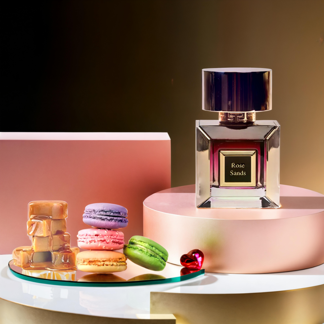 “Rose Sands” is a captivating gourmand fragrance that opens with a sweet and creamy blend of caramel and milk. The heart reveals the rich warmth of honey and tonka bean, while the base lingers with the sensuality of vanilla and white musk.